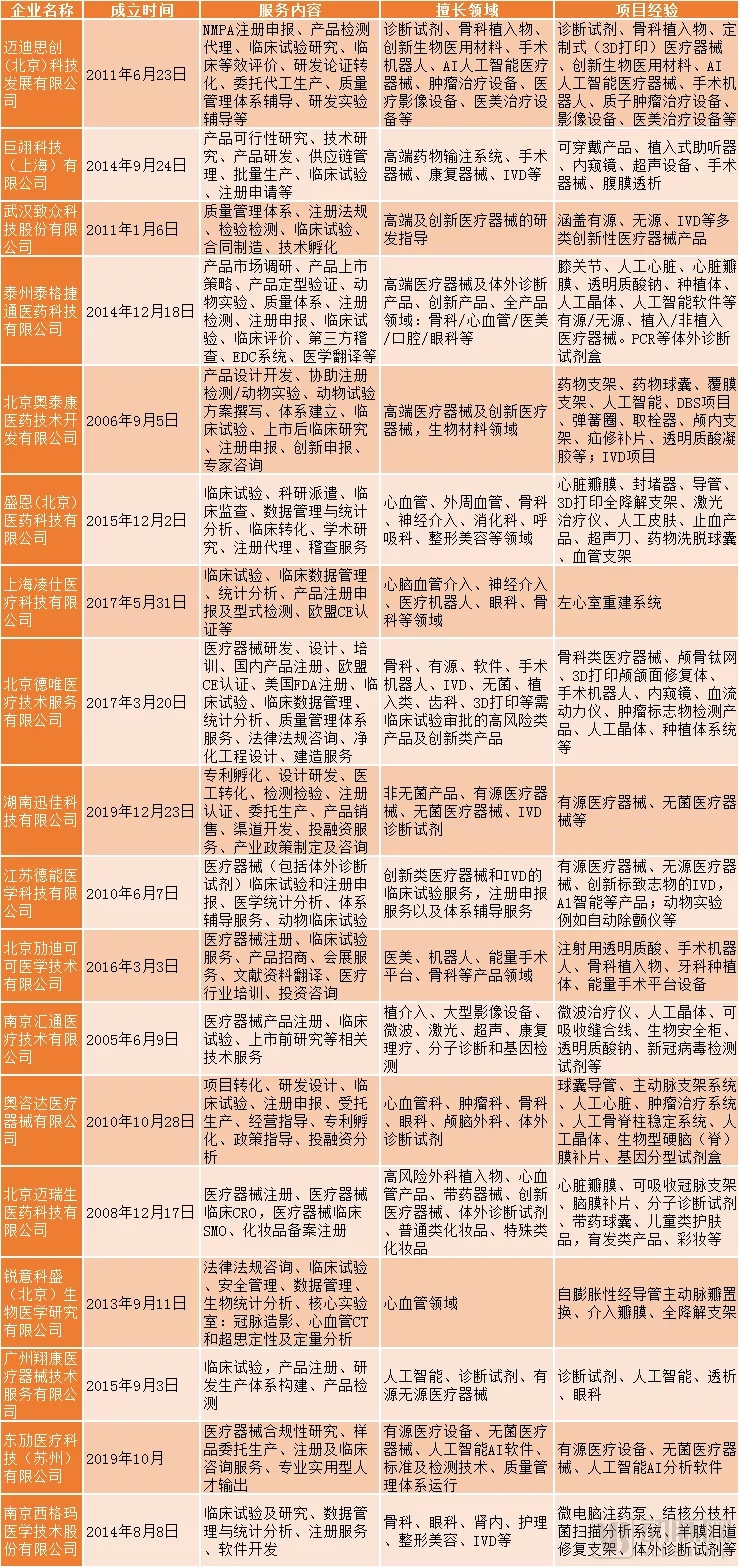 注:以上是醫(yī)療器械研發(fā)外包服務(wù)行業(yè)部分代表企業(yè),未窮盡顯示,企業(yè)排名不分先后