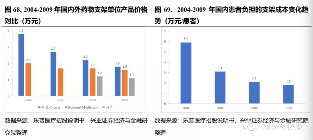 在產(chǎn)品價(jià)格方面,2008年進(jìn)口藥物支架單價(jià)在1.59~1.93萬元之間,而同等質(zhì)量的國產(chǎn)支架單價(jià)在1.08-1.10萬元之間,患者使用國產(chǎn)產(chǎn)品可比國外同等產(chǎn)品節(jié)約1/3左右的診療器械費(fèi),國內(nèi)產(chǎn)品具有較大的價(jià)格優(yōu)勢(shì)。近年來,由于國產(chǎn)心臟支架產(chǎn)品的崛起,迫使進(jìn)口品牌心臟支架市場(chǎng)價(jià)格下降了一半以上。