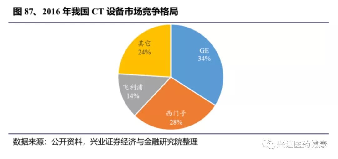CT是根據(jù)人體不同組織對(duì)X線的吸收與透過率的不同,應(yīng)用靈敏度極高的儀器對(duì)人體進(jìn)行測(cè)量,然后將測(cè)量所獲取的數(shù)據(jù)輸入計(jì)算機(jī),再對(duì)數(shù)據(jù)進(jìn)行處理后,就可攝下人體被檢查部位的斷面或立體的圖像,發(fā)現(xiàn)體內(nèi)任何部位的細(xì)小病變。根據(jù)中國醫(yī)學(xué)裝備協(xié)會(huì)發(fā)布的《2016年中國CT設(shè)備市場(chǎng)研究報(bào)告》,截止到2016年底,CT設(shè)備全國市場(chǎng)保有量突破20000臺(tái),相比2015年的19592臺(tái),保有量增長(zhǎng)10%;2012-2016年CT保有量復(fù)合增長(zhǎng)率為10.2%。2012年-2016年,我國CT設(shè)備市場(chǎng)每年新增銷量從2074臺(tái)增長(zhǎng)到了2575臺(tái),年復(fù)合增長(zhǎng)率為5%。我國在用的12074臺(tái)CT設(shè)備中,GPS呈現(xiàn)三足鼎立的競(jìng)爭(zhēng)格局,其中GE占34%,西門子占28%,飛利浦占14%,合計(jì)市占率達(dá)到86%。由于近年來國家政策的鼓勵(lì),東軟、聯(lián)影、安科等國產(chǎn)企業(yè)也開始發(fā)力,進(jìn)口設(shè)備的比例將持續(xù)降低。值得一提的是,在二級(jí)醫(yī)院市場(chǎng)中,國產(chǎn)品牌代表之一的東軟醫(yī)療打破國外壟斷,以超過10%的占有率躋身一線品牌行列。根據(jù)2018年1月-9月的全國各省市CT中標(biāo)結(jié)果來看,GE、東軟的中標(biāo)數(shù)最高,分別為36和22臺(tái);其次為西門子、聯(lián)影、安科,佳能、賽諾威盛中標(biāo)數(shù)量相對(duì)較少,已經(jīng)可以看到國產(chǎn)CT實(shí)現(xiàn)進(jìn)口替代的曙光。根據(jù)《2016年中國CT設(shè)備市場(chǎng)研究報(bào)告》,2015年,單雙層低端CT市場(chǎng)保有量占CT市場(chǎng)總額的51%,三級(jí)醫(yī)院主力機(jī)型64排及以上高端CT市場(chǎng)保有量占比接近20%。2015年16排CT銷量份額48%,單雙層CT銷量份額為15%,份額持續(xù)下滑,64排及以上高端CT銷量份額36%。近幾年,64排CT逐步代替16排CT成為縣級(jí)醫(yī)院的主力機(jī)型,而16排CT主要在鄉(xiāng)鎮(zhèn)衛(wèi)生院裝機(jī)較多。CT作為鄉(xiāng)鎮(zhèn)衛(wèi)生院服務(wù)能力標(biāo)準(zhǔn)(2018年版)A類鄉(xiāng)鎮(zhèn)衛(wèi)生院必配設(shè)備,基層醫(yī)療機(jī)構(gòu)更傾向于采購國產(chǎn)設(shè)備,一方面可以降低患者檢查成本,另一方面可以降低售后服務(wù)成本,這為國產(chǎn)品牌如東軟、聯(lián)影、安科、萬東等的進(jìn)口替代提供機(jī)會(huì)。國家衛(wèi)健委《大型醫(yī)用設(shè)備配置許可管理目錄(2018年)》提到部分設(shè)備如DSA、16排及以下CT、永磁磁共振無需再經(jīng)審批即可配置,對(duì)醫(yī)療機(jī)構(gòu)增加配置大型設(shè)備將起到正向激勵(lì)作用。衛(wèi)計(jì)委《關(guān)于發(fā)布2018—2020年大型醫(yī)用設(shè)備配置規(guī)劃的通知》中提到64排及以上CT未來三年內(nèi)國內(nèi)新增總臺(tái)數(shù)為3535臺(tái),也利好國內(nèi)生產(chǎn)該類設(shè)備的企業(yè)。此外,根據(jù)《2016年中國CT設(shè)備市場(chǎng)研究報(bào)告》,截止到2016年初,59%的CT設(shè)備購置在2010-2015年期間,28%的CT設(shè)備購置在2005-2010年期間,13%的CT設(shè)備購置在2005年以前,使用已超過10年,超期服役的設(shè)備大約有1500多臺(tái),這也是下一批更新?lián)Q代的主要對(duì)象,國產(chǎn)廠商有望搶奪部分市場(chǎng)份額。目前,我國國產(chǎn)CT的技術(shù)難點(diǎn)主要在于探測(cè)單元的制造工藝,要求探測(cè)單元陣列數(shù)多(即排數(shù)多)、旋轉(zhuǎn)及感應(yīng)速度快,對(duì)拼接工藝又有極高的標(biāo)準(zhǔn),需要單元與單元間隙盡可能小。在東軟醫(yī)療的帶領(lǐng)下,我國CT研發(fā)不斷實(shí)現(xiàn)技術(shù)突破,從東軟2012年推出首臺(tái)中國研制64排螺旋CT到2015年的128排螺旋CT,聯(lián)影、安科、萬東等企業(yè)也緊跟其腳步。目前,我國CT行業(yè)第一梯隊(duì)主要致力于64排CT的研發(fā)和注冊(cè),隨著滿足高性能檢測(cè)的64排CT的陸續(xù)上市,預(yù)計(jì)我國CT格局將發(fā)生改變。