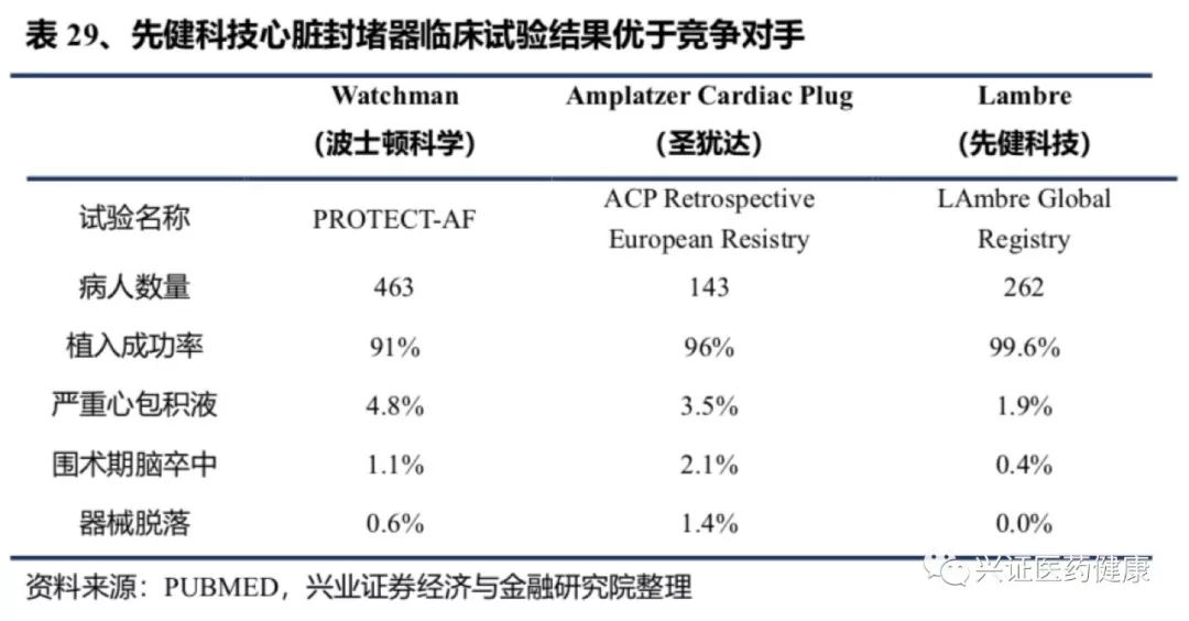先天性心臟病是先天性畸形中最常見的一類,約占各種先天畸形的28%,在先天性心臟病中,以室間隔缺損、房間隔缺損、動(dòng)脈導(dǎo)管未閉、肺動(dòng)脈瓣狹窄發(fā)病率最高。隨著封堵裝置及內(nèi)外科介入治療技術(shù)的不斷成熟,封堵器在房間隔缺損、室間隔缺損和動(dòng)脈導(dǎo)管未閉等領(lǐng)域的應(yīng)用越來越廣泛。國外圣猶達(dá)占據(jù)全球市場(chǎng)第一大份額,國內(nèi)擁有封堵產(chǎn)品注冊(cè)證的有先健科技、北京華醫(yī)圣杰科技、上海形狀記憶(樂普醫(yī)療子公司)三家,共占據(jù)了國內(nèi)市場(chǎng)的90%以上,我國心臟封堵器已經(jīng)實(shí)現(xiàn)進(jìn)口替代,其中先健科技已經(jīng)成為全球第二大先心封堵器供應(yīng)商、金磚四國第一大供應(yīng)商。以先健科技封堵器進(jìn)口替代的過程為例,技術(shù)創(chuàng)新發(fā)揮著重要作用:先天性心臟病封堵器是公司產(chǎn)品改良創(chuàng)新的典范,公司第一代先心封堵器產(chǎn)品以仿制為主,力求擁有與國外產(chǎn)品相同的質(zhì)量與效果;第二代產(chǎn)品則是在第一代的基礎(chǔ)上進(jìn)行材料創(chuàng)新,使用全球首創(chuàng)納米氮化鈦涂層,有效減少金屬離子向人體的釋放,并能降低血栓形成風(fēng)險(xiǎn);第三代封堵器則改良產(chǎn)品結(jié)構(gòu),使手術(shù)操作更為便捷。產(chǎn)品的優(yōu)越性使得公司得以拓寬海外市場(chǎng),在80多個(gè)國家進(jìn)行銷售。隨著不斷研發(fā)創(chuàng)新,公司已擁有多項(xiàng)國際領(lǐng)先技術(shù),個(gè)別產(chǎn)品臨床效果在與國外產(chǎn)品的對(duì)比中也盡顯優(yōu)勢(shì)。此外,先健科技的產(chǎn)品在實(shí)際應(yīng)用中還有多項(xiàng)優(yōu)勢(shì):對(duì)華法林(抗凝藥)禁忌癥適用,植入后無須服用華法林,而波士頓科學(xué)的Watchman在植入后一段時(shí)間內(nèi)仍需要服用華法林;植入過程中理論上可無限制的反復(fù)回收、重新放置,目前市場(chǎng)上只有圣猶達(dá)的第二代產(chǎn)品可以實(shí)現(xiàn)有限次數(shù)的反復(fù)回收,但該產(chǎn)品脫落率較高;適合各種形狀的左心耳,而波士頓科學(xué)和圣猶達(dá)的產(chǎn)品均存在使用限制;在并發(fā)癥方面具有優(yōu)勢(shì),左心耳封堵術(shù)最嚴(yán)重的并發(fā)癥為器械脫落,而公司產(chǎn)品可以實(shí)現(xiàn)100%不脫落,其他手術(shù)并發(fā)癥,例如心包積液、心臟穿孔的發(fā)生率也低于競(jìng)爭(zhēng)對(duì)手。