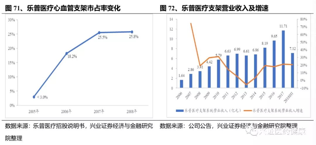 從產(chǎn)品覆蓋區(qū)域來講,國外企業(yè)的產(chǎn)品主要集中在經(jīng)濟(jì)發(fā)達(dá)地區(qū)如北京、上海、廣東等地,而國內(nèi)企業(yè)除上述區(qū)域外,已經(jīng)進(jìn)入所有省市級(jí)及部分地縣級(jí)醫(yī)院。以樂普醫(yī)療為例,2017年底,公司實(shí)現(xiàn)了全國所有省份的全覆蓋,特別是廣東、北京、河南、河北等高值耗材10個(gè)大省,至今仍處于放量期。對(duì)于部分區(qū)域的重點(diǎn)客戶,公司同時(shí)采取了直銷策略。此外,公司還開創(chuàng)閉環(huán)銷售渠道,即通過與基層醫(yī)院建立心血管合作中心,直接向這些醫(yī)療機(jī)構(gòu)提供設(shè)備、心臟支架及藥品,其它品牌產(chǎn)品無法參與競(jìng)爭(zhēng)。正是通過多渠道的銷售模式,公司產(chǎn)品銷量迅速增加。國內(nèi)心血管支架的競(jìng)爭(zhēng)格局在2009年基本形成,之后基本維持穩(wěn)定。在2005-2009年期間,國內(nèi)廠商享有行業(yè)高增速以及進(jìn)口替代的雙重驅(qū)動(dòng)。以樂普醫(yī)療為例,2002-2008年國內(nèi)支架使用數(shù)量復(fù)合增速40%,樂普醫(yī)療支架使用量2005-2008年復(fù)合增速為161.1%,高于行業(yè)增速。2012-2014年由于行業(yè)增速放緩,公司原有產(chǎn)品降價(jià)壓力增大,新產(chǎn)品Nano+于2011年上市,還未實(shí)現(xiàn)放量,導(dǎo)致公司2012-2014年支架收入增速為個(gè)位數(shù),2013年甚至為負(fù);2014年后公司支架業(yè)務(wù)重拾升軌,2014-2017年復(fù)合增長(zhǎng)率達(dá)到19.5%,2017年實(shí)現(xiàn)營(yíng)收11.71億元,同比增長(zhǎng)21.4%。