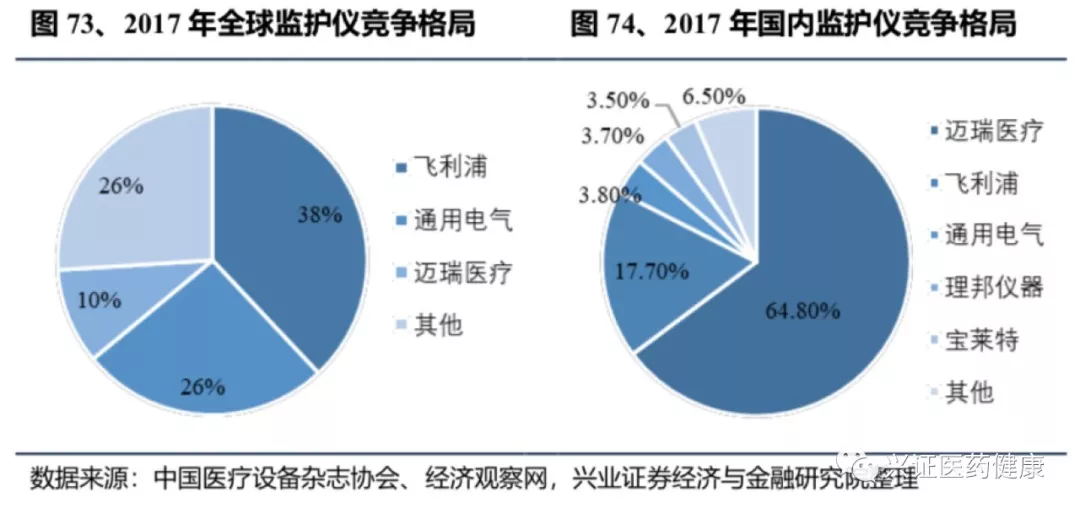 心血管支架未來競(jìng)爭(zhēng)格局的改變主要依靠可降解支架的上市。樂普醫(yī)療自主研發(fā)的重磅產(chǎn)品“生物可吸收冠狀動(dòng)脈雷帕霉素洗脫支架系統(tǒng)”(NeoVas)于2019年2月27日正式獲得國家藥品監(jiān)督管理局(NMPA)批準(zhǔn)的醫(yī)療器械注冊(cè)證,是國內(nèi)首個(gè)獲批的可降解支架,是國內(nèi)創(chuàng)新醫(yī)療器械領(lǐng)域的又一座里程碑。從時(shí)間節(jié)點(diǎn)來看,考慮到雅培已經(jīng)停售,主要競(jìng)爭(zhēng)對(duì)手的同類產(chǎn)品(微創(chuàng)醫(yī)療、先健科技等)仍處于在研階段,公司NeoVas將率先搶占市場(chǎng),有望獲得兩年以上的先發(fā)優(yōu)勢(shì),引領(lǐng)第四代心臟支架的市場(chǎng)應(yīng)用與技術(shù)發(fā)展,我們預(yù)計(jì)在未來3-4年內(nèi)可降解支架有望占據(jù)國內(nèi)支架市場(chǎng)超過10%的使用量。● 監(jiān)護(hù)儀:以邁瑞為首的國產(chǎn)廠商推動(dòng)進(jìn)口替代完成