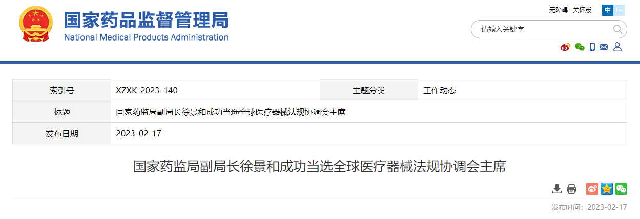 利雅得時間2月16日下午4時,國家藥監(jiān)局副局長徐景和成功當選第27屆全球醫(yī)療器械法規(guī)協(xié)調(diào)會(GHWP)主席。這在我國醫(yī)療器械監(jiān)管國際化進程中具有重要意義。