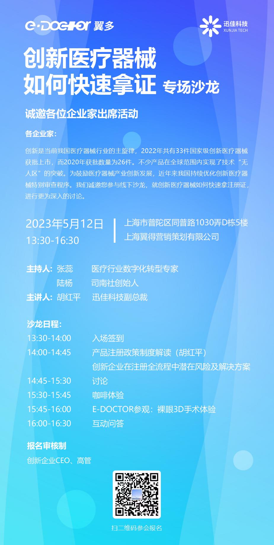 為鼓勵醫(yī)療器械產(chǎn)業(yè)創(chuàng)新發(fā)展,近年來我國持續(xù)優(yōu)化創(chuàng)新醫(yī)療器械特別審查程序。2023年5月13日,我們誠邀您參與線下沙龍,就創(chuàng)新醫(yī)療器械如何快速拿注冊證進行更為深入的討論!