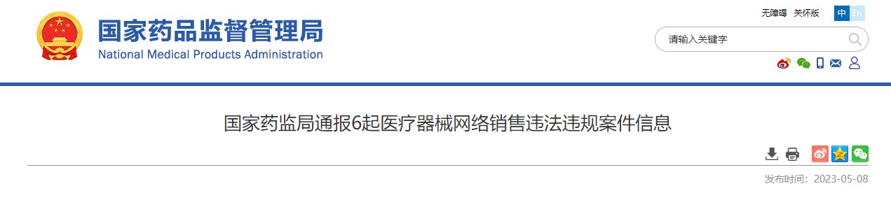 國(guó)家藥監(jiān)局指導(dǎo)各級(jí)藥品監(jiān)督管理部門加強(qiáng)醫(yī)療器械網(wǎng)絡(luò)銷售監(jiān)管,依托國(guó)家醫(yī)療器械網(wǎng)絡(luò)銷售監(jiān)測(cè)平臺(tái),加強(qiáng)醫(yī)療器械網(wǎng)絡(luò)銷售監(jiān)測(cè)和違法違規(guī)線索處置,嚴(yán)厲打擊違法違規(guī)行為。各級(jí)藥品監(jiān)管部門積極行動(dòng),查處了一批違法違規(guī)案件,切實(shí)維護(hù)人民群眾身體健康和用械安全?,F(xiàn)通報(bào)6起醫(yī)療器械網(wǎng)絡(luò)銷售違法違規(guī)案件信息。