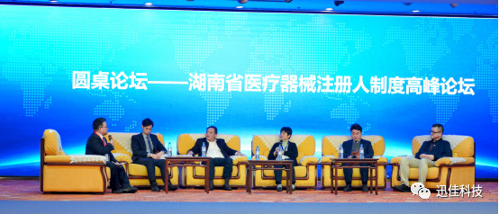 在高峰論壇上,湖南省藥品審評認證與不良反應(yīng)監(jiān)測中心副主任彭慧芳宣講了“湖南省醫(yī)療器械審評審批制度改革概況”,全軍普通外科醫(yī)療??浦行母敝魅?,主任醫(yī)師、北大醫(yī)療腫瘤診療中心主任醫(yī)師徐迎新教授分享了“轉(zhuǎn)化醫(yī)學(xué)平臺的建立與存在的問題”。迅佳科技杜曉東、上海漢盛蔣海洪、全軍普通外科醫(yī)療??浦行母敝魅涡煊隆⑨t(yī)道社社長湯國平、湘潭市市場監(jiān)督管理局局長莫秋華、湘潭市中心醫(yī)院副院長李紹杰就“湖南省醫(yī)療器械注冊人制度”的議題開展了圓桌論壇。