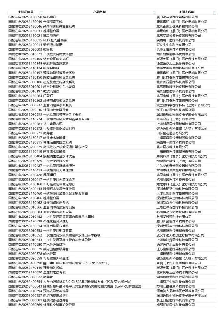 2025年第一季度,國(guó)家藥品監(jiān)督管理局共批準(zhǔn)了63個(gè)醫(yī)療器械產(chǎn)品的注冊(cè)申請(qǐng)。這些產(chǎn)品涵蓋了骨科、心血管、眼科、外科、診斷設(shè)備等多個(gè)領(lǐng)域,顯示出醫(yī)療器械行業(yè)的多樣性和廣泛性。從注冊(cè)人住所和生產(chǎn)地址的分布來(lái)看,醫(yī)療器械企業(yè)主要集中在北京、上海、深圳、廈門、蘇州等經(jīng)濟(jì)發(fā)達(dá)地區(qū)。這些地區(qū)的醫(yī)療資源豐富,科研實(shí)力強(qiáng),政策支持力度大,為企業(yè)的發(fā)展提供了良好的環(huán)境。北京:15家企業(yè),主要集中在海淀區(qū)和大興區(qū),占23.8%。上海:12家企業(yè),主要分布在浦東新區(qū)和嘉定區(qū),占19.1%。深圳:8家企業(yè),主要集中在南山區(qū)和坪山區(qū),占12.7%。廈門:7家企業(yè),主要分布在海滄區(qū),占11.1%。蘇州:5家企業(yè),主要分布在高新區(qū)和工業(yè)園區(qū),占7.9%。其他城市:共16家企業(yè),分布在重慶、杭州、南京、武漢等地,占25.4%。這種地域分布反映了醫(yī)療器械行業(yè)的區(qū)域集中化趨勢(shì),但也顯示出中小城市和區(qū)域的潛力有待進(jìn)一步挖掘。-數(shù)量:6個(gè)產(chǎn)品,占9.5%。以上海為主。-主要產(chǎn)品:腫瘤標(biāo)志物復(fù)合質(zhì)控品(深圳市昭藍(lán)生物科技有限公司)幽門螺桿菌核酸檢測(cè)試劑盒(賽潤(rùn)(上海)醫(yī)學(xué)科技有限公司)結(jié)核分枝桿菌利福平及異煙肼耐藥突變檢測(cè)試劑盒(蘇州江鐠健康科技有限公司)-特點(diǎn):這些產(chǎn)品主要用于疾病診斷和監(jiān)測(cè),技術(shù)門檻較高,市場(chǎng)需求穩(wěn)定。-數(shù)量:17個(gè)產(chǎn)品,占27%。以北京、江蘇為主。-主要產(chǎn)品:血管內(nèi)超聲診斷系統(tǒng)(波士頓科學(xué)醫(yī)療科技(上海)有限公司)磁控膠囊式內(nèi)窺鏡系統(tǒng)(北京善行醫(yī)療科技有限公司)超聲外科吸引手術(shù)設(shè)備(北京普瑞順祥醫(yī)療科技有限公司)-特點(diǎn):設(shè)備類產(chǎn)品技術(shù)含量高,涉及復(fù)雜的電子和機(jī)械系統(tǒng),主要用于醫(yī)院的診斷和治療過(guò)程。-數(shù)量:25個(gè)產(chǎn)品,占39.7%。以江蘇、浙江為主。-主要產(chǎn)品:一次性使用等離子手術(shù)電極(深圳邁瑞生物醫(yī)療電子股份有限公司)一次性使用冠脈血管內(nèi)沖擊波導(dǎo)管(上海佳沐垚醫(yī)療科技有限公司)一次性使用雙極高頻超聲雙輸出手術(shù)器械(武漢半邊天微創(chuàng)醫(yī)療技術(shù)有限公司)-特點(diǎn):耗材類產(chǎn)品使用頻率高,市場(chǎng)需求大,產(chǎn)品更新?lián)Q代快。-數(shù)量:3個(gè)產(chǎn)品,占4.8%。-主要產(chǎn)品:親水性纖維敷料(穩(wěn)健醫(yī)療用品股份有限公司)膠原貼敷料(海南愛美麗生物科技有限責(zé)任公司)軟聚硅酮泡沫敷料(穩(wěn)健醫(yī)療用品股份有限公司)-特點(diǎn):敷料類產(chǎn)品主要用于傷口護(hù)理,市場(chǎng)需求穩(wěn)定,技術(shù)門檻相對(duì)較低。-數(shù)量:12個(gè)產(chǎn)品,占19%。以江蘇、北京為主。-主要產(chǎn)品:空心螺釘(廈門達(dá)芬奇醫(yī)療器械有限公司)椎間融合器(康元嘉和(廈門)醫(yī)療器械有限公司)頸椎前路釘板固定系統(tǒng)(廈門達(dá)芬奇醫(yī)療器械有限公司)-特點(diǎn):無(wú)源產(chǎn)品通常不需要外部能源即可發(fā)揮作用,主要依賴于材料和機(jī)械結(jié)構(gòu),廣泛應(yīng)用于骨科和外科領(lǐng)域。在63個(gè)注冊(cè)產(chǎn)品中,有19個(gè)產(chǎn)品在注冊(cè)后發(fā)生了變更,主要涉及注冊(cè)人住所和生產(chǎn)地址的變更。這些變更反映了企業(yè)對(duì)市場(chǎng)需求的快速響應(yīng)能力,以及對(duì)生產(chǎn)布局的優(yōu)化。- 住所變更:10個(gè)產(chǎn)品,主要從北京市海淀區(qū)遷至其他區(qū)域。- 生產(chǎn)地址變更:8個(gè)產(chǎn)品,主要從上海浦東新區(qū)遷至其他生產(chǎn)基地。- 其他變更:1個(gè)產(chǎn)品,涉及產(chǎn)品技術(shù)要求和適用范圍的調(diào)整。通過(guò)對(duì)2025年第一季度醫(yī)療器械注冊(cè)數(shù)據(jù)的分析,可以總結(jié)出以下行業(yè)趨勢(shì)和挑戰(zhàn):1. 技術(shù)創(chuàng)新驅(qū)動(dòng):高附加值、高技術(shù)含量的產(chǎn)品逐漸成為主流,如微導(dǎo)管、磁控膠囊式內(nèi)窺鏡系統(tǒng)等。2. 區(qū)域集中化:企業(yè)主要集中在經(jīng)濟(jì)發(fā)達(dá)地區(qū),但中小城市的潛力仍需進(jìn)一步挖掘。3. 審批效率提升:國(guó)家藥品監(jiān)督管理局的審批效率顯著提高,為企業(yè)的快速發(fā)展提供了保障。4. 市場(chǎng)競(jìng)爭(zhēng)加?。弘S著產(chǎn)品種類的增加,市場(chǎng)競(jìng)爭(zhēng)將進(jìn)一步加劇,企業(yè)需要不斷提升產(chǎn)品質(zhì)量和技術(shù)水平。2025年第一季度中國(guó)醫(yī)療器械行業(yè)的注冊(cè)數(shù)據(jù)反映了行業(yè)的快速發(fā)展和技術(shù)創(chuàng)新。然而,區(qū)域集中化、審批效率和市場(chǎng)競(jìng)爭(zhēng)等問(wèn)題仍需關(guān)注。未來(lái),企業(yè)應(yīng)加強(qiáng)技術(shù)創(chuàng)新,優(yōu)化生產(chǎn)布局,提升產(chǎn)品質(zhì)量,以應(yīng)對(duì)日益激烈的市場(chǎng)競(jìng)爭(zhēng),中國(guó)醫(yī)療器械行業(yè)有望在技術(shù)創(chuàng)新和市場(chǎng)擴(kuò)展中實(s