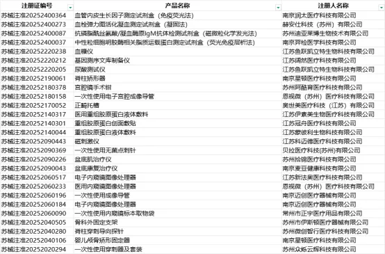 根據(jù)江蘇省藥品監(jiān)督管理局2025年1-3月發(fā)布的醫(yī)療器械注冊數(shù)據(jù),共新增27個第二類醫(yī)療器械注冊證,涉及23家注冊人企業(yè)。