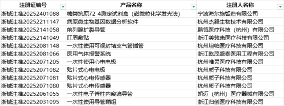 根據(jù)浙江省藥品監(jiān)督管理局2025年1-3月發(fā)布的醫(yī)療器械注冊數(shù)據(jù),共新增12個(gè)第二類醫(yī)療器械注冊證,涉及10家注冊人企業(yè)。