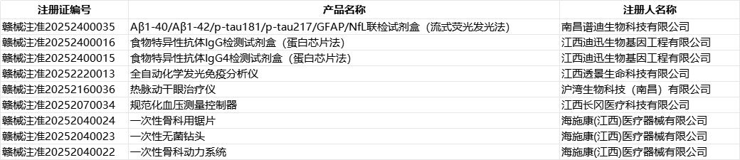 根據(jù)江西省藥品監(jiān)督管理局2025年1-3月發(fā)布的醫(yī)療器械注冊(cè)數(shù)據(jù),共新增9 個(gè)第二類醫(yī)療器械注冊(cè)證,涉及6家注冊(cè)人企業(yè)。