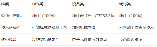 核心發(fā)現(xiàn):100%產(chǎn)品委托外省生產(chǎn),長(zhǎng)三角(浙江)占比77.8%,珠三角(廣東)占11.1%,凸顯沿海地區(qū)高端制造優(yōu)勢(shì)。