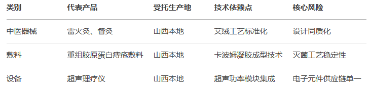 中醫(yī)器械全本地化:雷火灸、督灸等產(chǎn)品由山西康必健、久可生物代工,體現(xiàn)傳統(tǒng)醫(yī)療工藝的本地傳承。