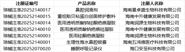 根據(jù)海南省藥品監(jiān)督管理局2025年1-3月發(fā)布的醫(yī)療器械注冊(cè)數(shù)據(jù),共新增7個(gè)第二類醫(yī)療器械注冊(cè)證,涉及5家注冊(cè)人企業(yè)。