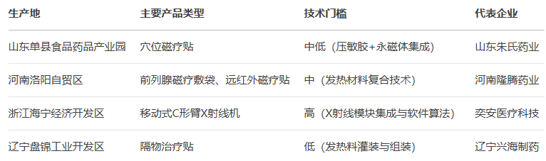 傳統(tǒng)敷料跨省生產(chǎn):穴位磁療貼(山東朱氏藥業(yè))、前列腺磁療敷袋(河南隆騰藥業(yè))依賴規(guī)模化生產(chǎn)與材料工藝。