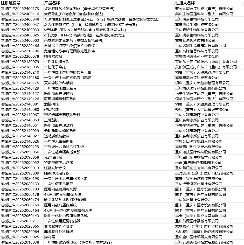 2025年上半年注冊人制度下,重慶二類醫(yī)療器械產(chǎn)業(yè)市內(nèi)委托占比近70%,跨省委托占比超30%,產(chǎn)業(yè)鏈處于升級階段。