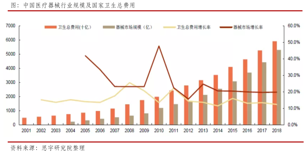 醫(yī)療器械產(chǎn)業(yè)是事關(guān)人類生命健康的多學(xué)科交叉、知識(shí)密集、資金密集型的高技術(shù)產(chǎn)業(yè),其發(fā)展水平代表了一個(gè)國(guó)家的綜合實(shí)力與科學(xué)技術(shù)發(fā)展水平。2019年全球醫(yī)療器械產(chǎn)業(yè)規(guī)模達(dá)到4519億美元,同比增長(zhǎng)5.6%。從全球老齡化、平均壽命、經(jīng)濟(jì)發(fā)展等趨勢(shì)來(lái)看,市場(chǎng)需求仍處于上升趨勢(shì)。2019年中國(guó)醫(yī)療器械市場(chǎng)規(guī)模約6259億元人民幣,同比增長(zhǎng)18%,明顯快于全球增速以及國(guó)內(nèi)其他行業(yè)平均增速。中國(guó)已經(jīng)成為全球醫(yī)療器械的重要生產(chǎn)基地,在多種中低端產(chǎn)品領(lǐng)域,產(chǎn)量位居世界第一。