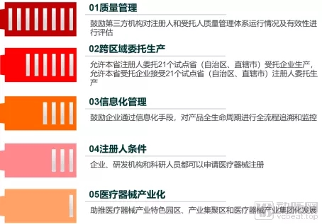 通過對(duì)21個(gè)省份醫(yī)療器械注冊(cè)人制度試點(diǎn)政策的梳理,對(duì)醫(yī)療器械研發(fā)外包服務(wù)行業(yè)影響較大的有質(zhì)量管理、跨區(qū)域委托生產(chǎn)、信息化管理、注冊(cè)人條件和醫(yī)療器械產(chǎn)業(yè)化5個(gè)方面的內(nèi)容。