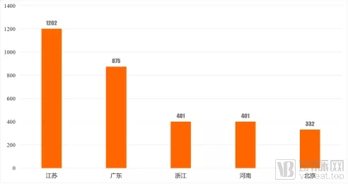 圖8 2019年國(guó)內(nèi)三類醫(yī)療器械首次注冊(cè)數(shù)量TOP5地區(qū);