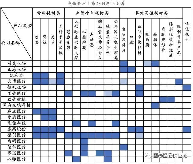國內(nèi)低值耗材上市公司產(chǎn)品圖譜