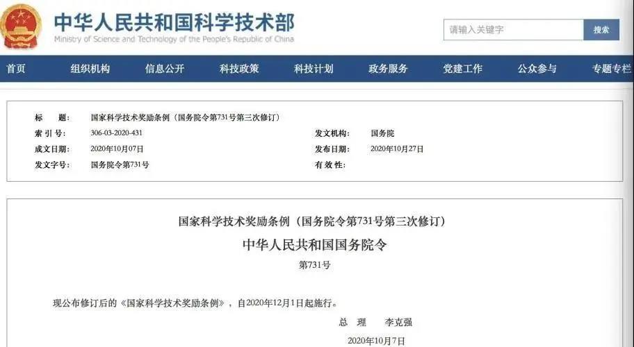 現(xiàn)公布修訂后的《國家科學技術(shù)獎勵條例》,自2020年12月1日起施行。