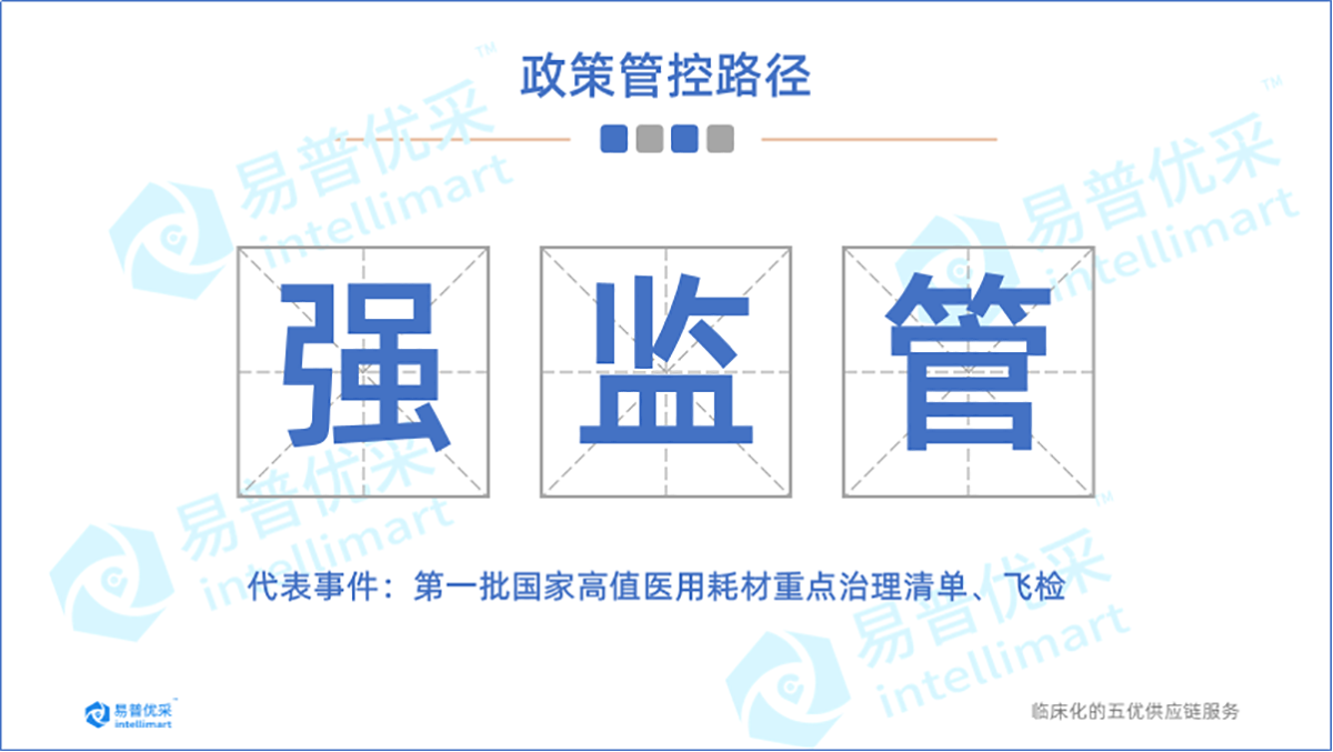 第三條是加強(qiáng)監(jiān)管,比如年初衛(wèi)健委即下發(fā)了第一批國(guó)家高值醫(yī)用耗材重點(diǎn)治理清單,以及醫(yī)保局日趨嚴(yán)苛、密集的飛行檢查,均在借助行政手段的力量逐步規(guī)范耗材采購(gòu)及用耗行為。我們逐一來(lái)看。